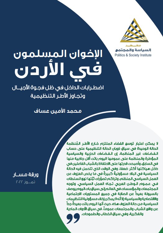 الإخوان المسلمون في الأردن “اضطرابات الداخل في ظل فجوة الأجيال وتجاوز الأطر التنظيمية” محمد الأمين عساف17/07/2022 فيسبوك X ماسنجر ماسنجر واتساب تيلقرام مشاركة عبر البريد طباعة الإخوان-المسلمون-في-الأردن-تنزيل نسخ الرابط تم نسخ الرابط محمد الأمين عساف17/07/2022 فيسبوك X ماسنجر ماسنجر واتساب تيلقرام مشاركة عبر البريد طباعة