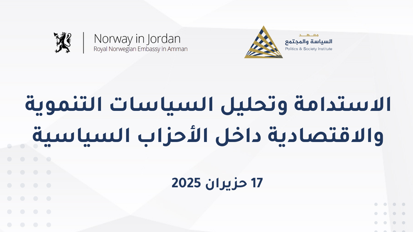 الاستدامة وتحليل السياسات التنموية والاقتصادية داخل الأحزاب السياسية”… ورشتي عمل لمعهد السياسة والمجتمع