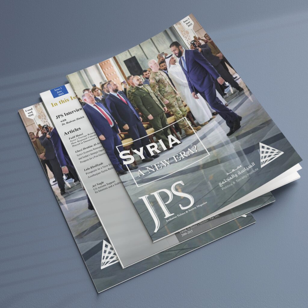 The Politics and Society Institute has published the third issue of its biannual publication, the Jordanian Politics and Society magazine (JPS), under the title “Syria: A New Era?”. This special issue examines the political, security, and economic transformations unfolding in Syria since the fall of Bashar al-Assad’s regime in December 2024, and the wide-ranging local and regional implications across the Middle East.