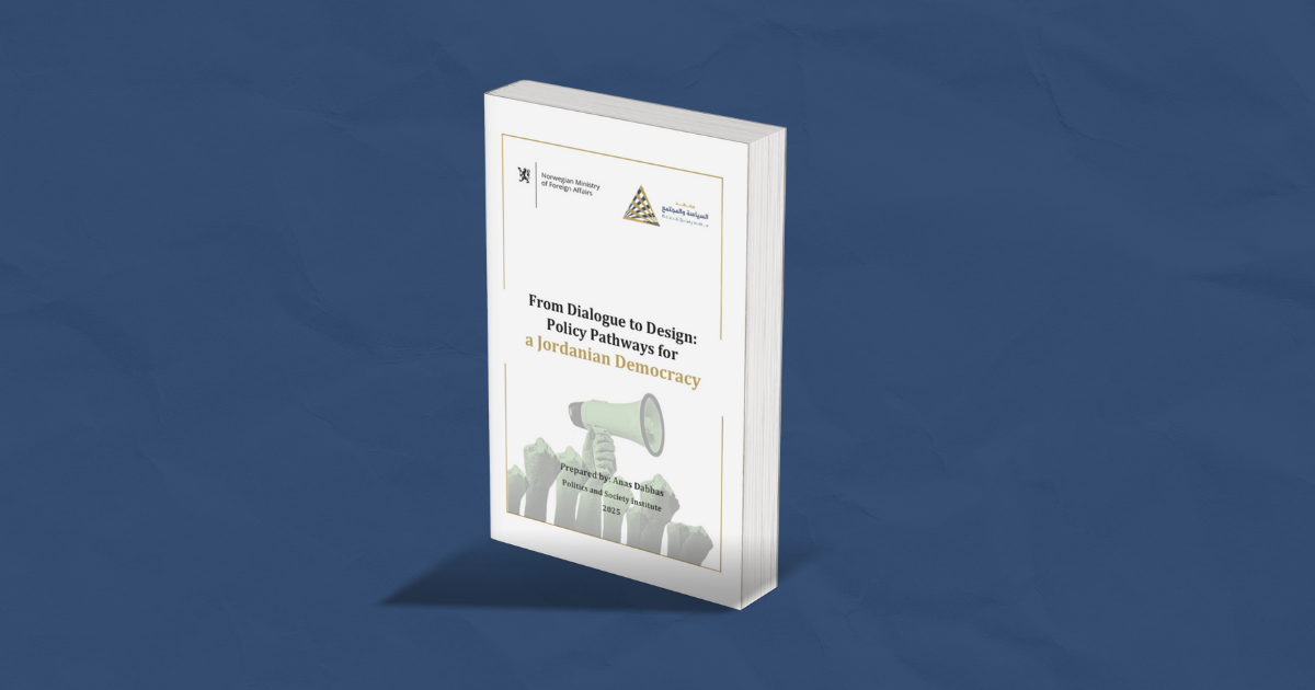 From Dialogue to Design: Policy Pathways for a Jordanian Democracy Politics Society06/10/2025 Facebook X Messenger Messenger WhatsApp Telegram Share via Email Print To download the book directlyFrom Dialogue to Design Policy Pathways for a Jordanian Democracyتنزيل Copy URL URL Copied Politics Society06/10/2025 Facebook X Messenger Messenger WhatsApp Telegram Share via Email Print